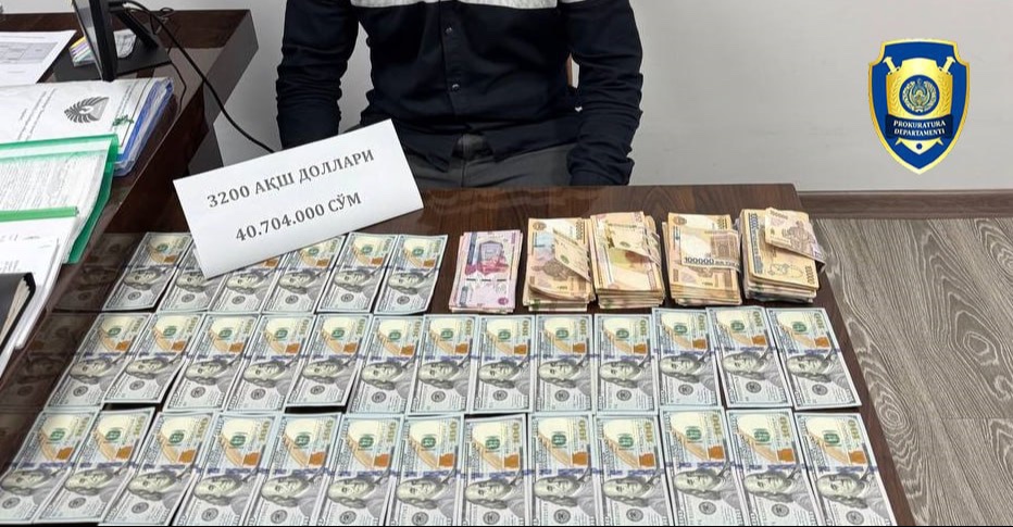 Департаментнинг Бухоро вилояти бошқармаси ва ИИБ ходимлари ҳамкорлигида ўтказилган тезкор тадбирда эсафуқаро У.Ж. Пешку тумани “Чибоғони” МФЙ ҳудудидаги савдо дўконида фуқаро З.Н.дан 3 200 АҚШ долларини40,7 млн сўмга сотиб олаётган вақтида ашёвий далиллар билан ушланган.