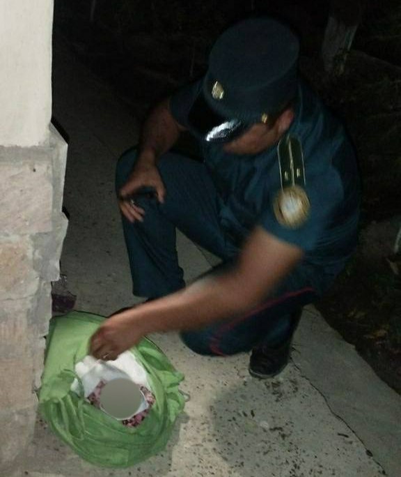 Атрофни синчковлик билан кўздан кечирган ходимлар девор ёнида яшил рангли пакет ичида тахминан 3-5 кунлик ўғил бола чақалоқ борлигини аниқлашади.