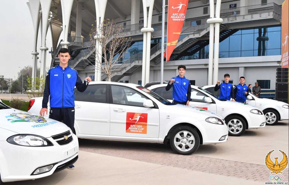 Тадбирда сўз олган расмийлар футболчиларимизни қўлга киритилган муваффақият билан қутлаб, уларга роппа-роса икки ойдан кейин бўлиб ўтадиган Жаҳон чемпионатида ҳам юртимиз шарафини муносиб ҳимоя қилишларини тилаб қолди. Тадбир якунида қаҳрамон йигитларимизга Ўзбекистон Республикаси Президенти совғаси - «Chevrolet Lacetti Gentra» автомобиллари топширилди, деб хабар беради Ўзбекистон Миллий Олимпия қўмитаси.