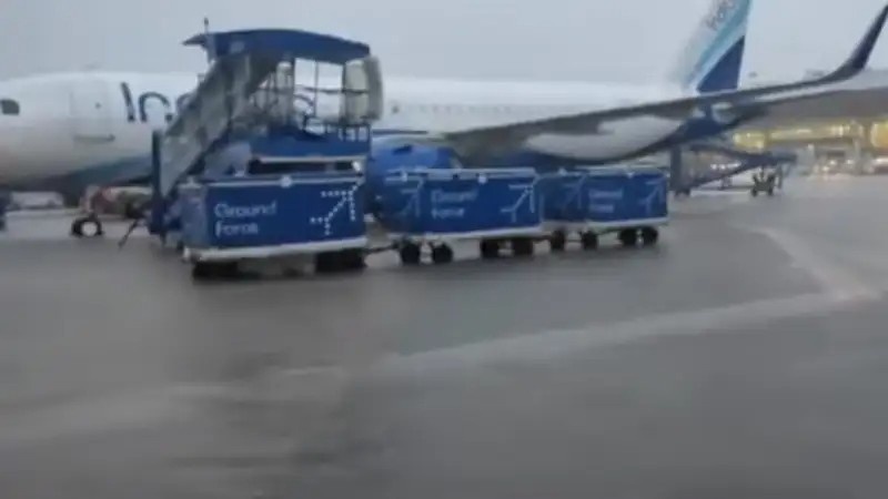 Ижтимоий тармоқларда тарқалган видеоларда аэропорт терминали ва учиш-қўниш йўлаклари сув остида қолгани акс этган, деб хабар беради tengrinews.kz.