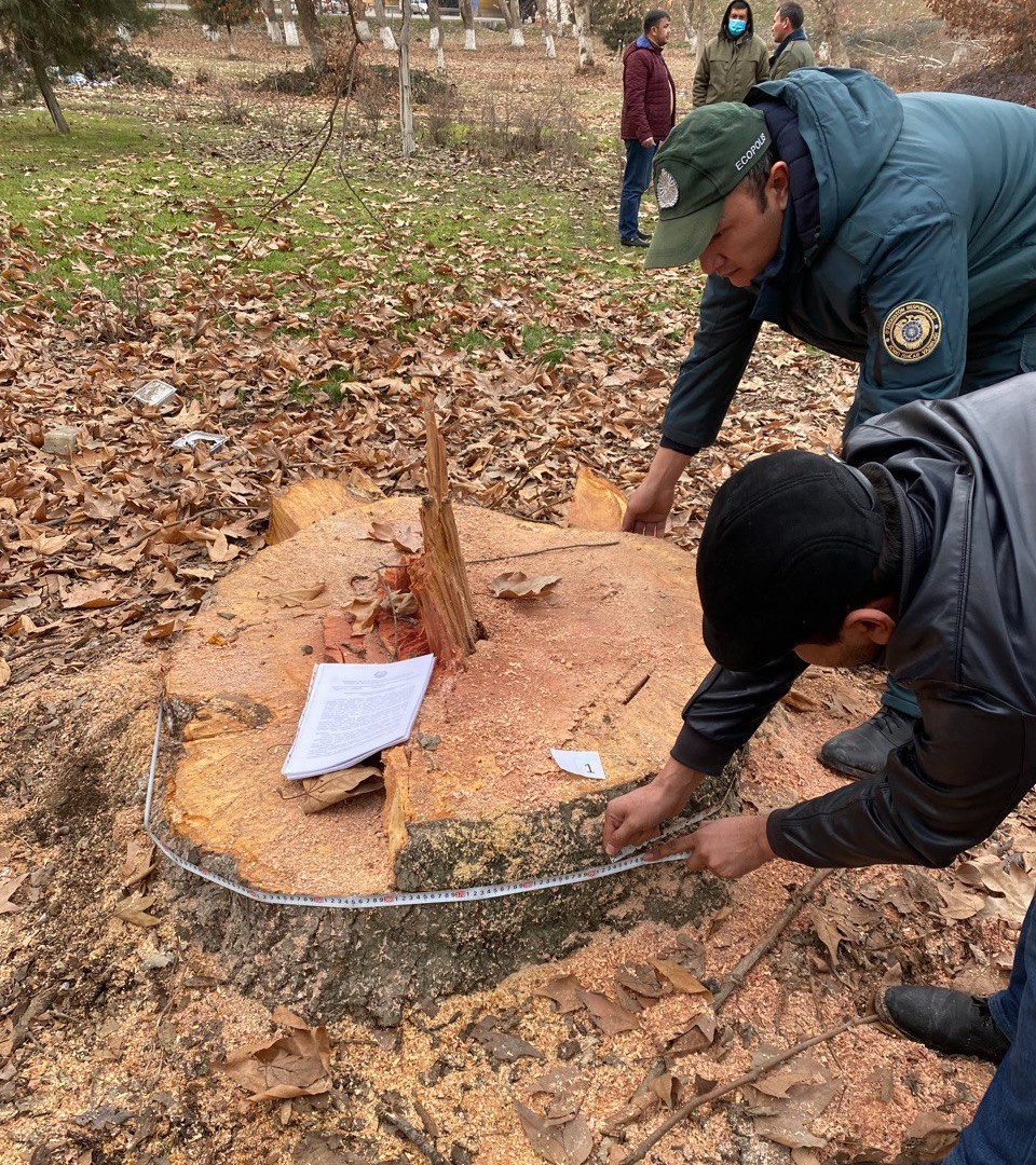 Ўтказилган рейд тадбири давомида Тошкент вилояти Юқори Чирчиқ тумани Файзиобод маҳалласи ҳудудидан ўтувчи автомобиль йўли четида мавжуд бўлган кўп йиллик 3 туп чинор дарахти номаълум шахслар томонидан кесиб кетилганлиги аниқланган.