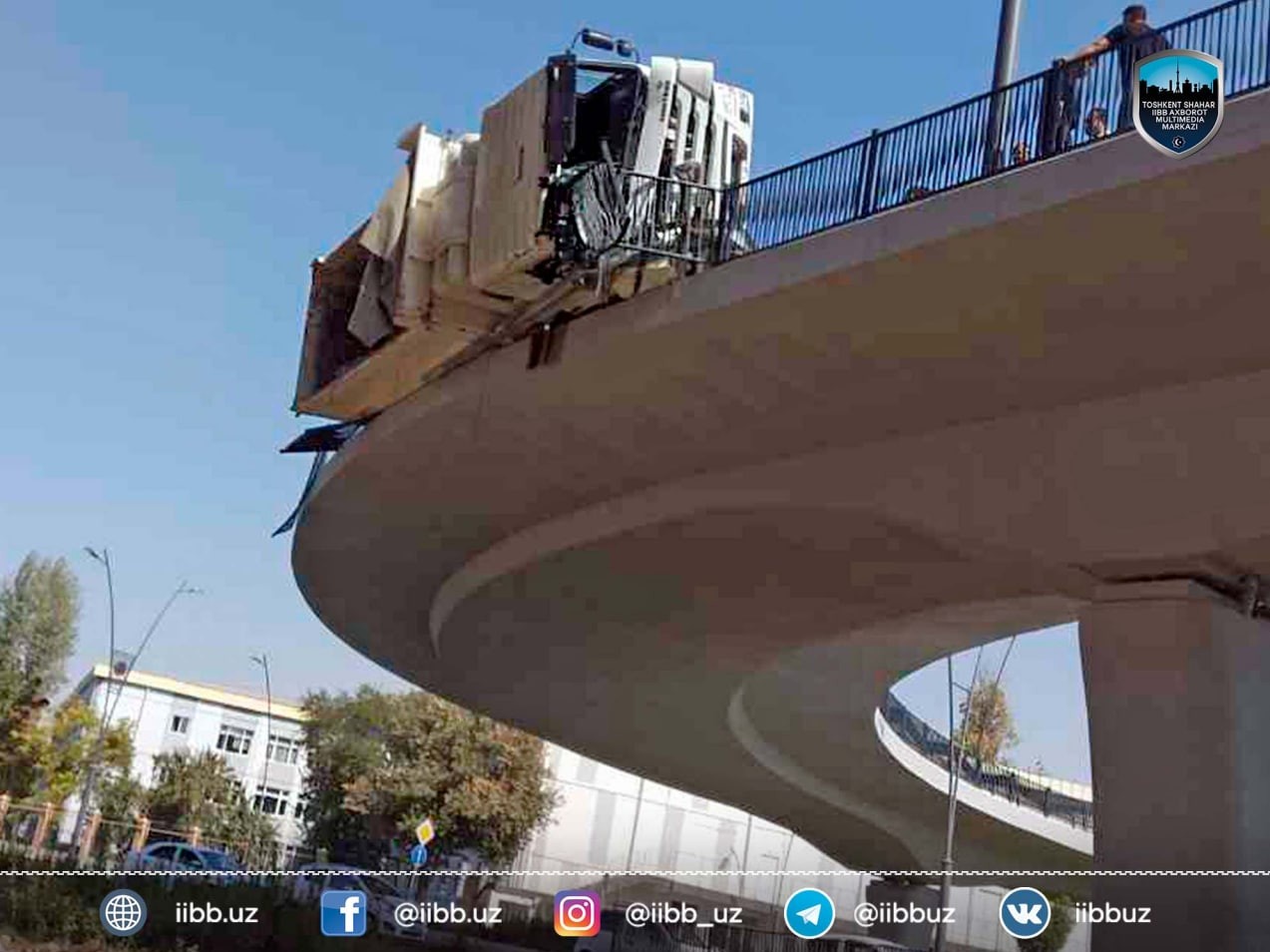 Тошкентдаги кўприк устида юк автоулови ағдарилиб кетди. Бу ҳақда Тошкент шаҳар ИИББ матбуот хизмати хабар қилди.