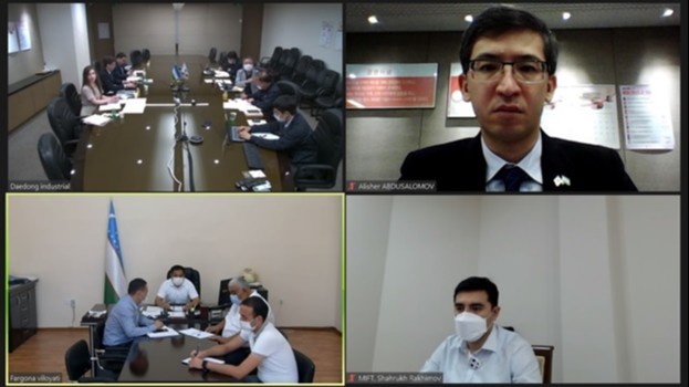 Ўзбекистоннинг Сеулдаги элчихонаси томонидан ташкил этилган видеоконференцияда Фарғона вилояти ҳокими ўринбосари М.Абдураҳмонов Жанубий Кореянинг «Daedong Industrial Co., Ltd.» компанияси президенти Ли Сонг Таэ билан онлайн музокаралар ўтказди.