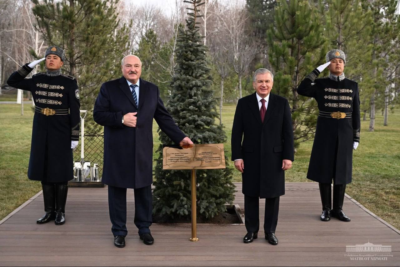 Фахрий меҳмонлар хиёбонида Президентлар Шавкат Мирзиёев ва Александр Лукашенко мамлакатларимиз ва халқларимиз ўртасидаги дўстлик ва шериклик муносабатларини янада мустаҳкамлашга интилиш рамзи сифатида дарахт экдилар.