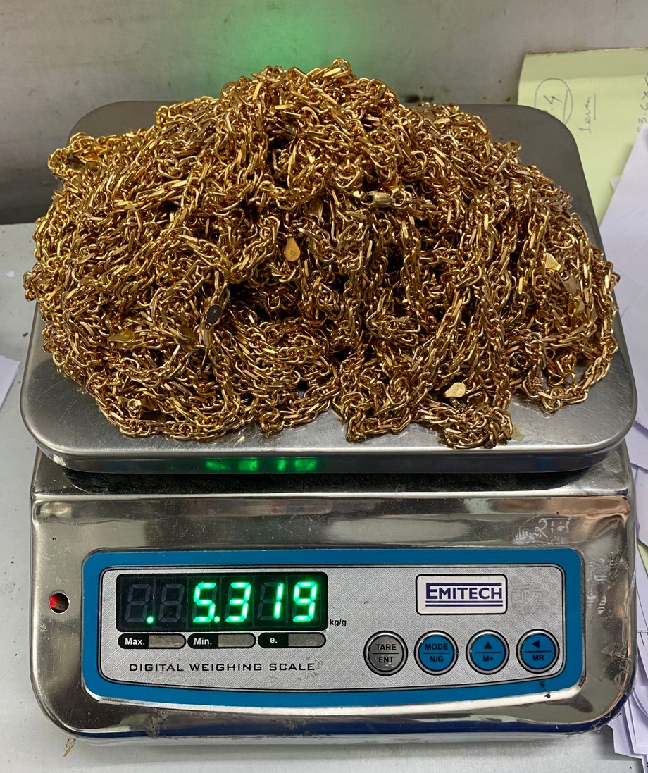 Божхона вакиллари ўтказган операция натижасида қиймати 2,92 миллион рупий (тахминан 35 минг АҚШ доллари)га тенг тилла занжирлар мусодара қилинди.