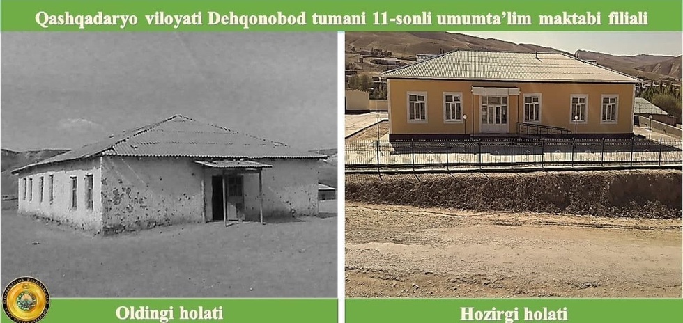 Қашқадарё вилояти Деҳқонобод туманидаги 11-умумтаълим мактаби Тиллатепа филиали Инвестиция дастури доирасида янгидан қуриб берилди.