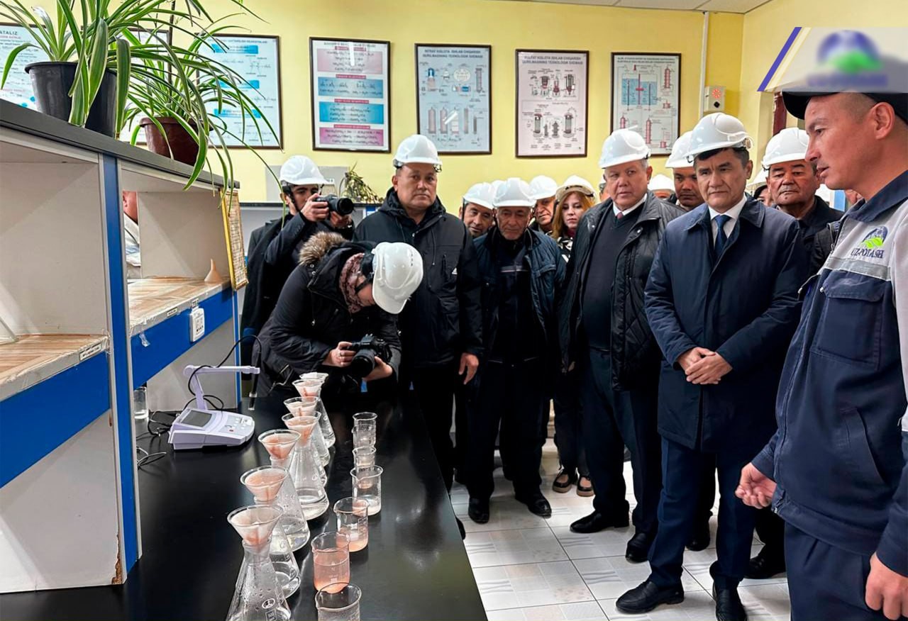 Журналистлар калий ўғитлари ишлаб чиқариш цехлари, завод лабораторияси, бу ерга келтирилаётган хомашё тайёр маҳсулот ҳолига келгунига қадар бўлган технологик жараёнлар билан танишди.