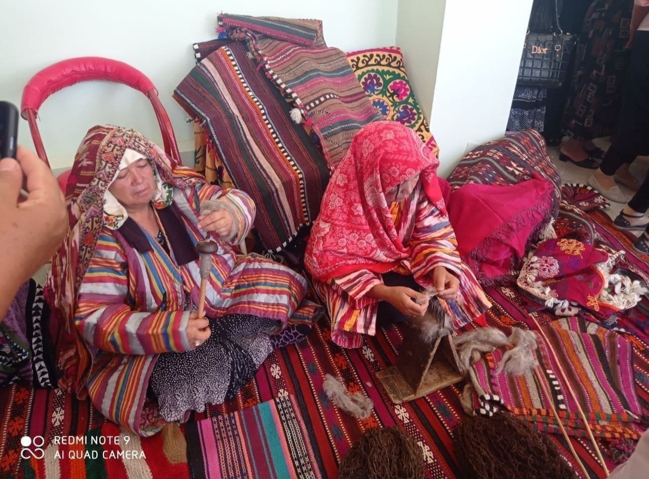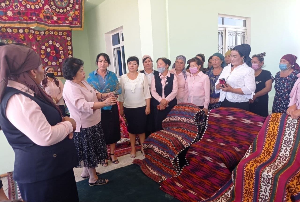 Ташриф давомида тумандаги “Ҳунармандчилик маркази”да миллий қадриятларни акс эттирувчи, ҳудудда кенг тарқалган гиламчилик, қуроқчилик, каштачилик билан шуғулланаётган бир гуруҳ аёллар билан суҳбатлашди.