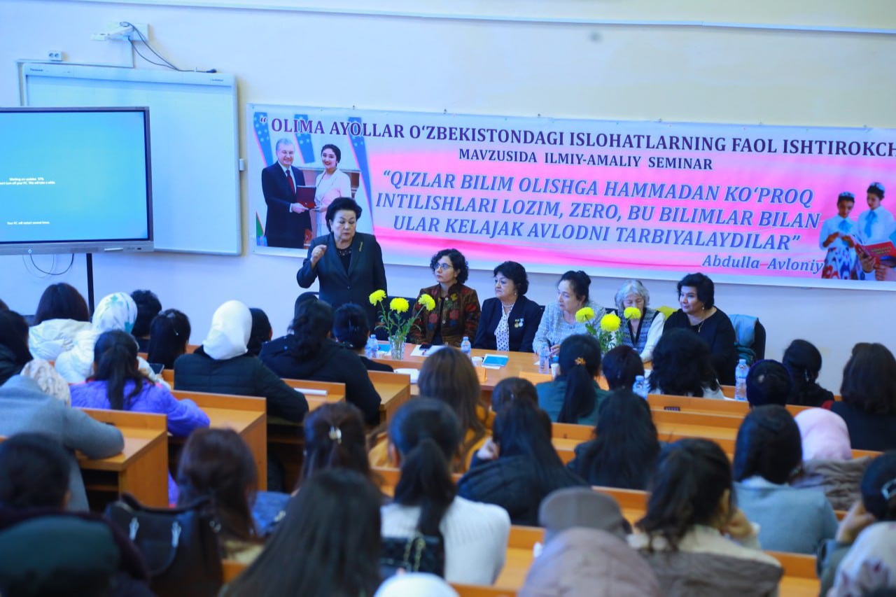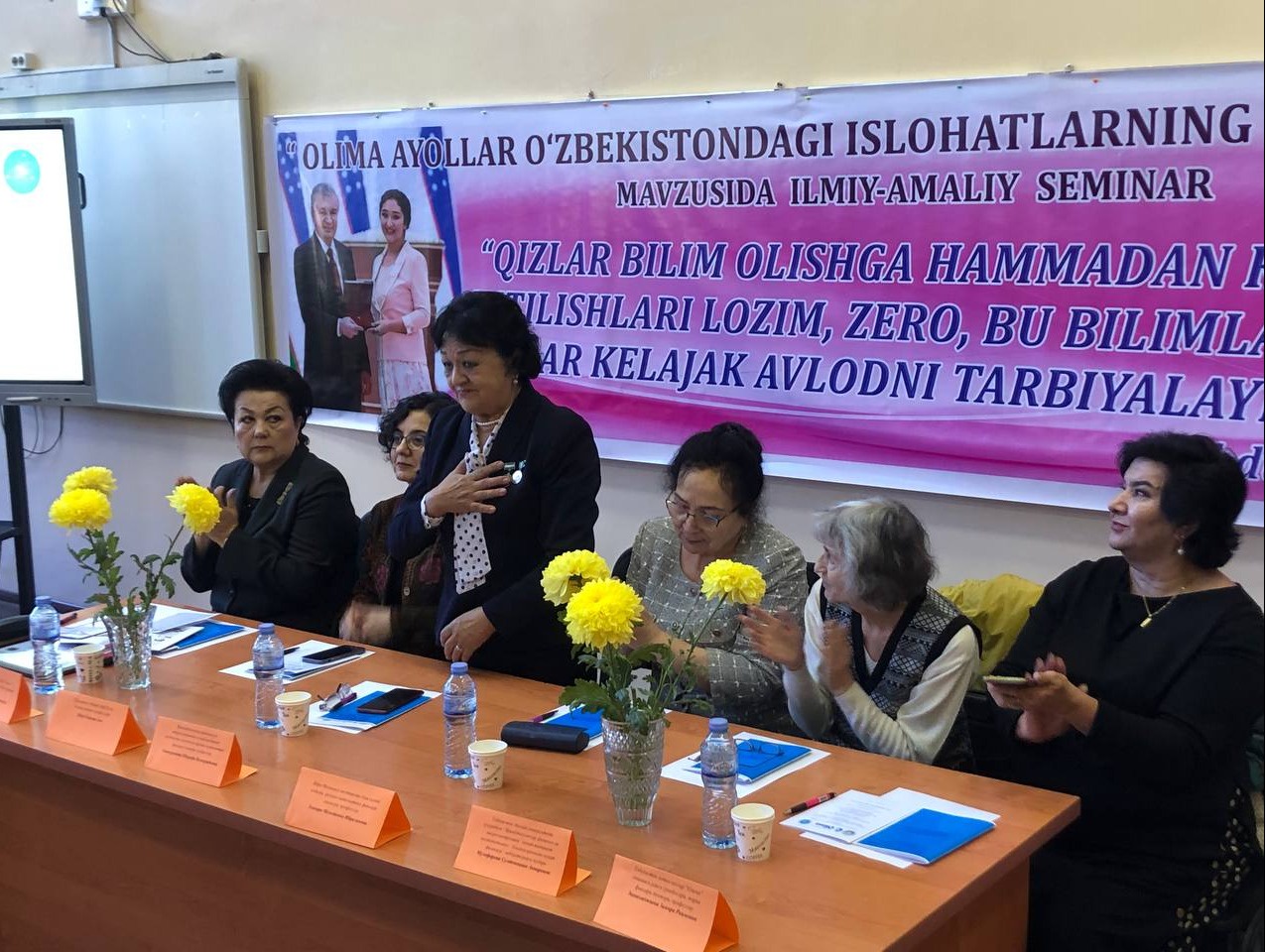 Семинарни Физика факултети профессори, ЎзМУ Олима аёллар ташкилоти раиси Зоҳидова Мавлуда очиб берди. Шундан сўнг профессор Дилек Ердуран Туркиядаги хотин-қизларга доир статистик маълумотлар, таълим соҳасидаги хотин-қизларнинг ўрни хусусида тўхталиб ўтди.