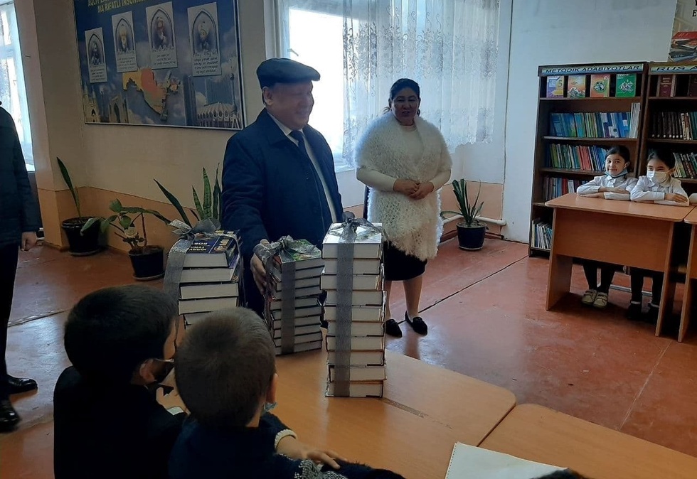 Қўмита раиси ўқувчи ёшларга китоблар жамланмасини туҳфа қилди.