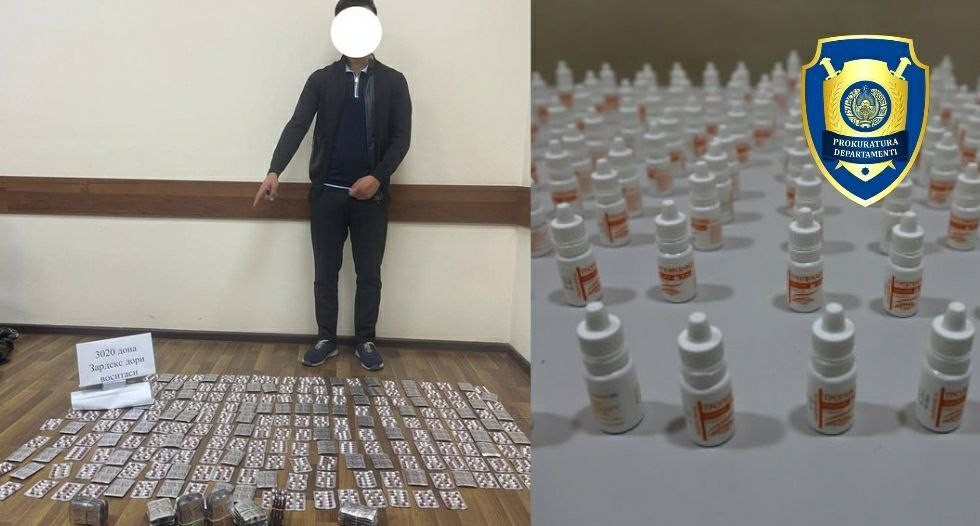 Бош прокуратура ҳузуридаги Департаментнинг Мирзо Улуғбек туман бўлими томонидан ДХХ ва ИИВ ходимлари билан ҳамкорликда тезкор тадбир ўтказилди. Унда фуқаро А.Ш. ва бошқалар 1 000 дона “Зардекс” номли кучли таъсир қилувчи дори воситасини фуқаро Х.Ш.га 25 миллион сўмга сотган вақтида ушланиб, А.Ш.нинг ёнидан 220 дона ва унинг хонадонидан яна 1 800 дона “Зардекс” номли дори воситаси ашёвий далил сифатида олинган.