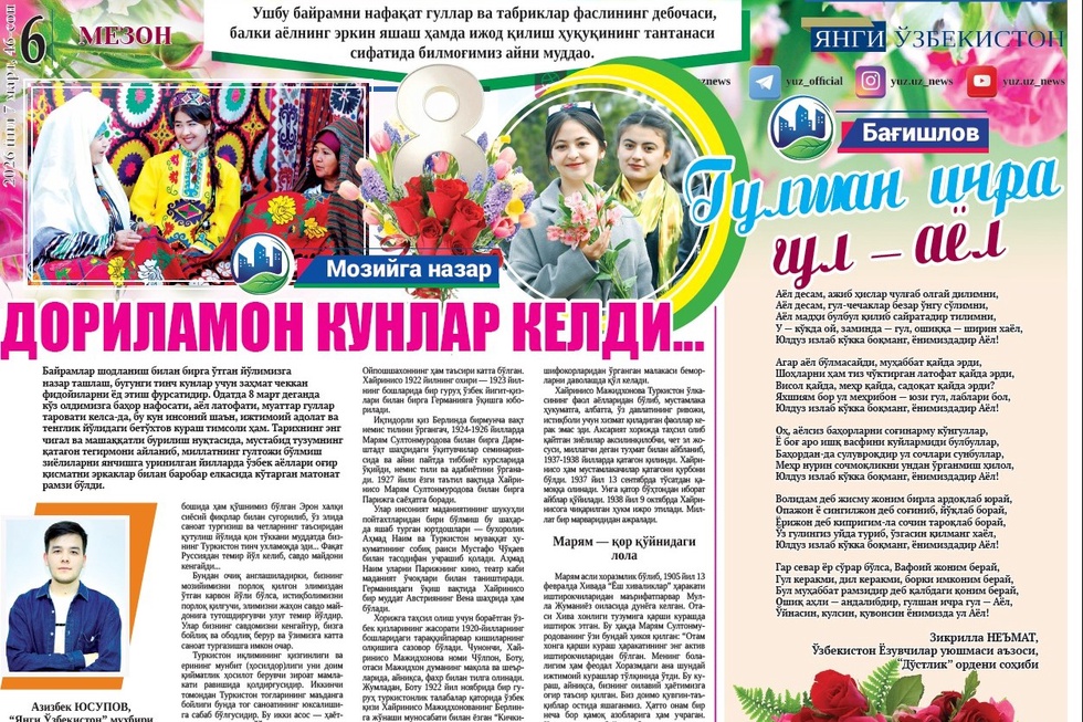 Шу боис, ушбу байрамни нафақат гуллар ва табриклар фаслининг дебочаси, ­балки аёлнинг эркин яшаш ҳамда ижод қилиш ҳуқуқининг тантанаси сифатида билмоғимиз айни муддао.