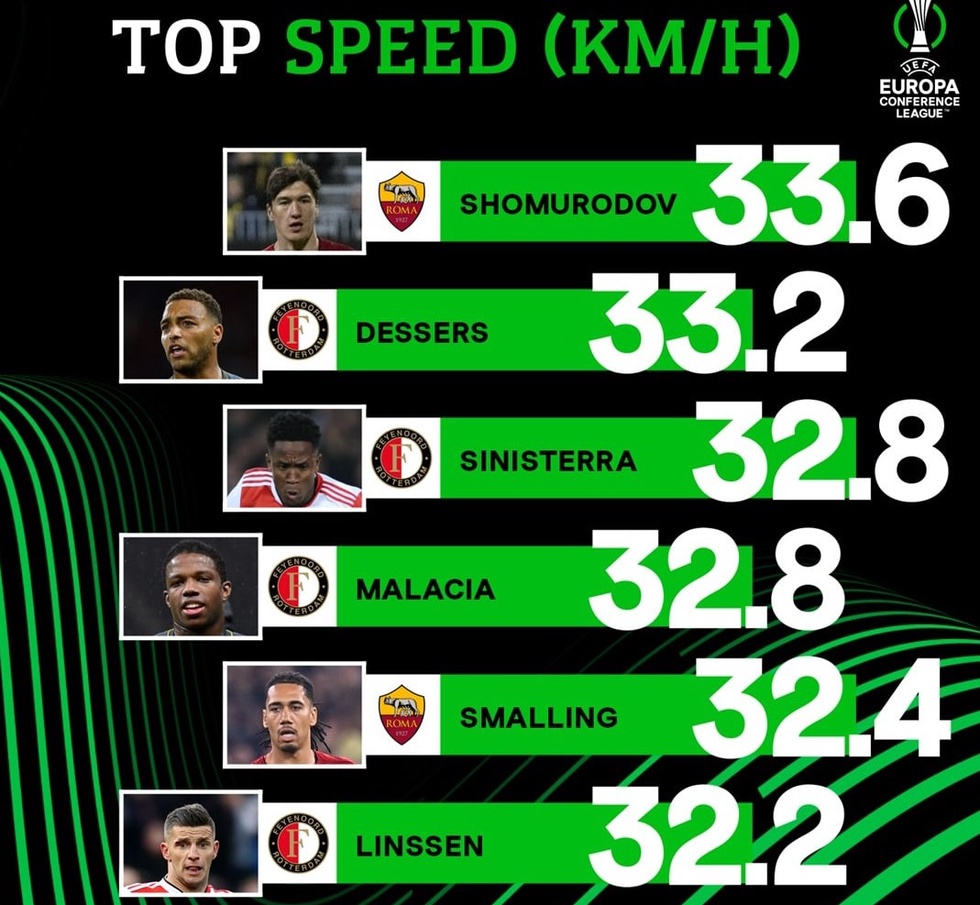 УЕФА расмий сайти Конференциялар лигаси 2021/22 йилги мавсум якунларига кўра, турнирда энг юқори тезликни қайд этган ўйинчилар рўйхатини эълон қилди.