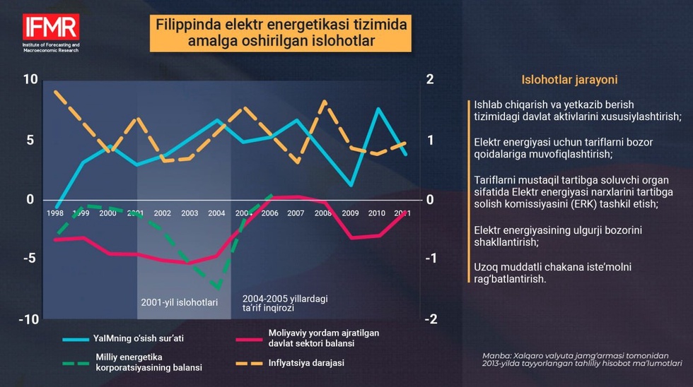 2001 йилда Филиппин ҳукумати энергетика тизимини ислоҳ қилиш тўғрисидаги қонунни қабул қилди. Шунга кўра, қуйидаги вазифаларни амалга ошириш режалаштирилди: