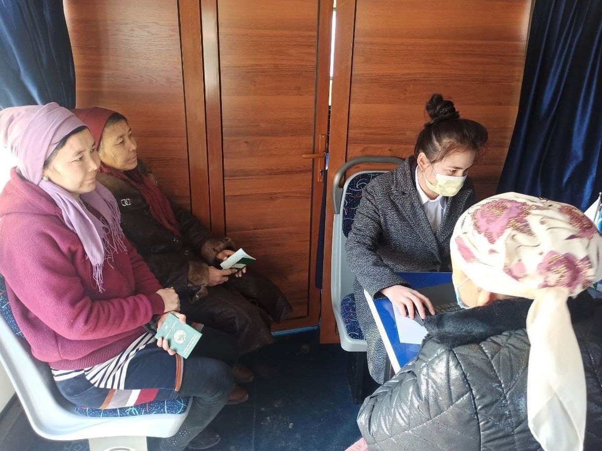 Бугуннинг ўзида мобил автобус ёрдамида алхажарликларга 50 дан ортиқ давлат хизматлари сайёр тартибда кўрсатилди.