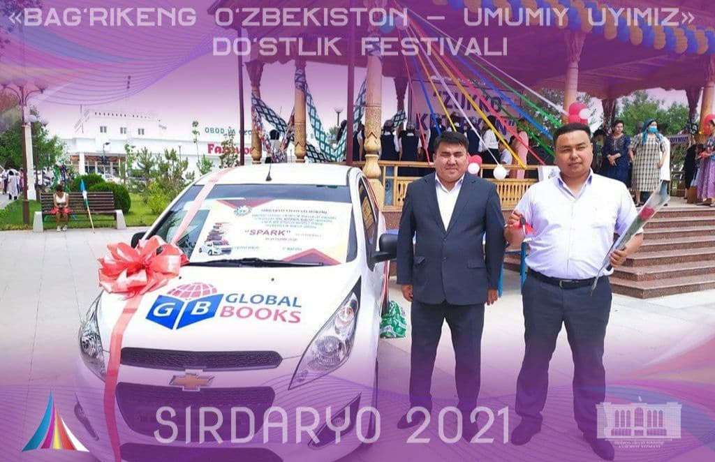 Сирдарёда бўлиб ўтаётган "Бағрикенг Ўзбекистон — умумий уйимиз" дўстлик фестивали доирасида мазкур танловнинг ғолиби - Боёвут тумани 35-умумтаълим мактаби директори Акбар Назаровга вилоят ҳокими Ғофуржон Мирзаев «Спарк» автомобилининг калитини топширди.