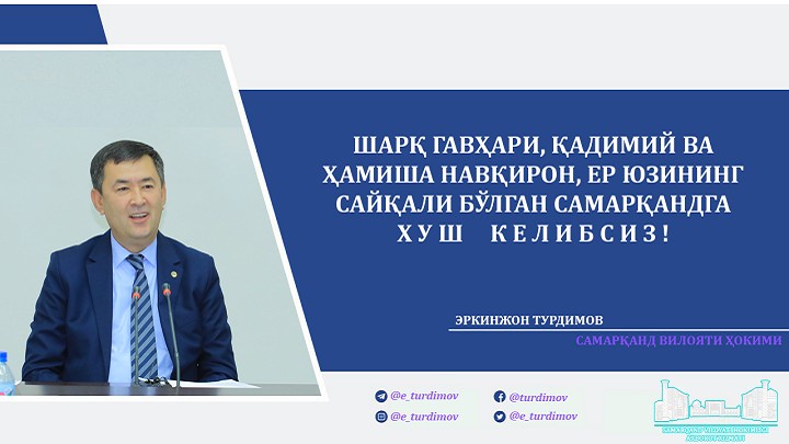 Миллий давлатчилигимиз тарихида муҳим ўрин тутадиган ва бугун халқаро мулоқот майдонига айланиб бораётган Самарқанда илк бор бундай кенг кўламдаги, йирик халқаро тадбирнинг ўтказилаётгани, албатта, бутун вилоятимиз аҳли учун чексиз фахр ва ифтихордир.