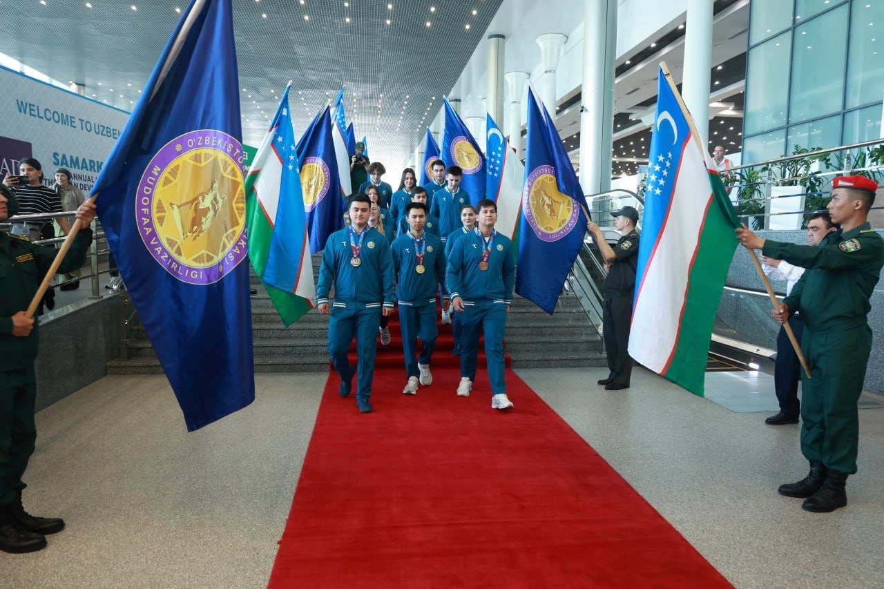 Ғолиб ва совриндор спортчилар Ислом Каримов номидаги Тошкент халқаро аэропортида тантанали кутиб олинди.