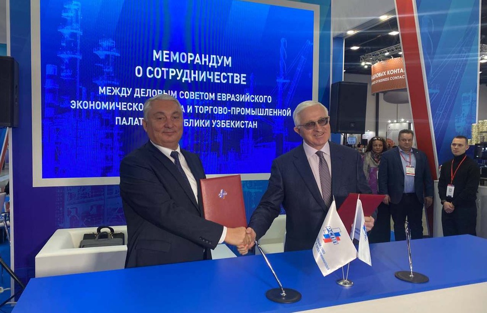 Форум доирасида Кенгаш раиси Александр Шохин ва Жамшед Ураков иштирокида Евроосиё Иттифоқи Ишбилармонлар кенгаши ва Ўзбекистон Республикаси Савдо-саноат палатаси ўртасида ҳамкорлик тўғрисидаги меморандумни имзолашга бағишланган тантанали маросим бўлиб ўтди, деб хабар беради Савдо-саноат палатаси матбуот хизмати.