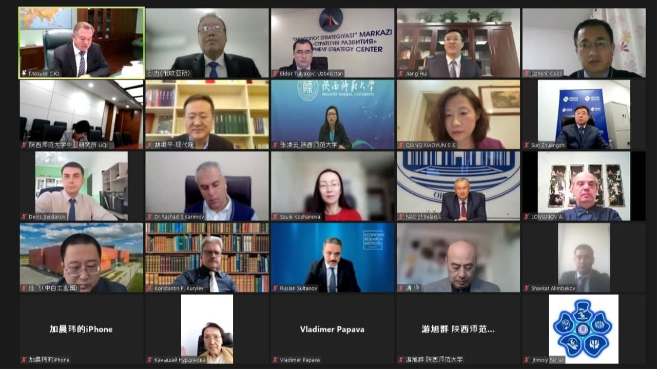 Тадбирда Хитой Халқ Республикаси Ижтимоий фанлар Академияси вице-президенти Тцзян Хуй, Шаанси провинцияси халқ ҳукумати губернаторининг ўринбосари Хао Хуижзе, Евроосиё иқтисодий комиссияси (ЕЕУ) интеграцияси ва макроиқтисодиёт вазири Сергей Глазев, Шанхи педагогика университети ректори профессор Ю Хунқун, Белорусия Миллий фанлар академияси биринчи вице-президенти Сергей Чайковский ҳамда Хитой, Россия, Ўзбекистон, Тожикистон, Қозоғистон, Қирғизистон, Украина ва Озарбайжон давлатларининг еткачи «ақл марказлари» иштирок этишди.
