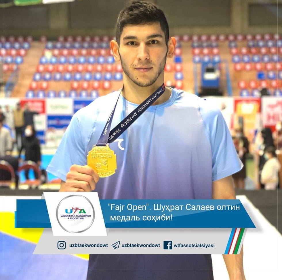 Мамлакатимиз вакили, таэквондочи Шуҳрат Салаев, кеча, 9 март куни 80 кг вазн тоифасида барча рақибларини мағлубиятга учратиб олтин медалга эга чиқди. Бу ҳақда Ўзбекистон таэквондо WT ассоциацияси матбуот хизмати хабар берди.