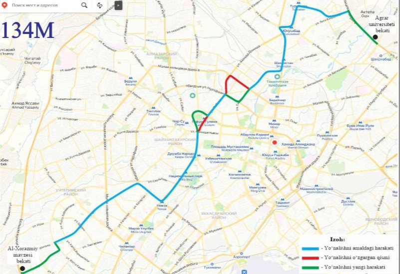 Тошкент шаҳар транспорт ва йўл-транспорт инфратузилмасини ривожлантириш бош бошқармаси маълумотига кўра йўналиш номи ўзгартирилиб “Ал-Хоразмий мавзеси бекати – Аграр университети бекати” этиб белгиланди.