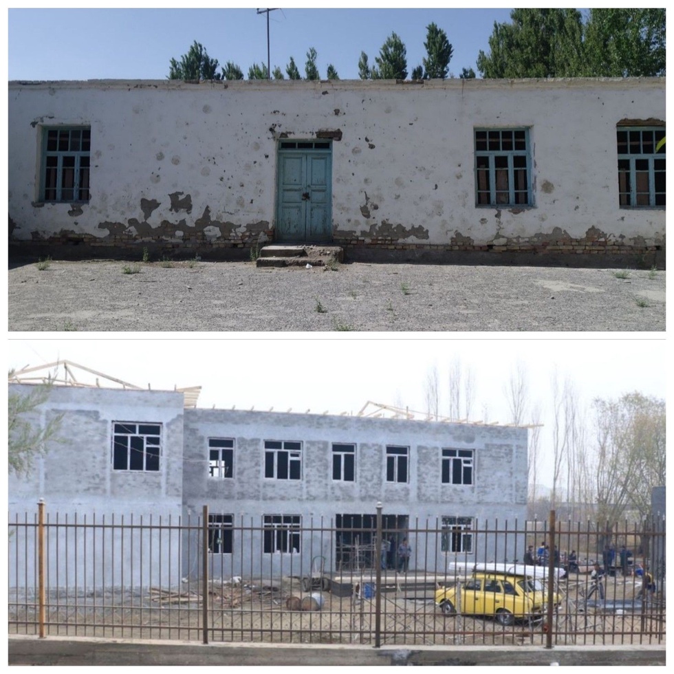 Бугунги кунда ўқув биносининг бетон, ғишт териш ишлари, ром ўрнатиш ишлари охирига етказилди. Янги мактаб биносининг фасад ва ички қисмларида пардозлаш ишлари бажарилмоқда. Таъкидлаш жоиз, оталиққа олинган мактаблар янгича қиёфа касб этиб, таълим олаётган келажак авлодни илм олишга иштиёқини янада оширишга хизмат қилиши шубҳасиз.