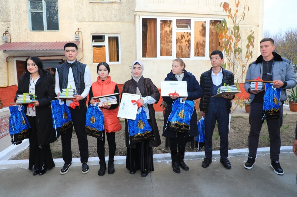Рухшона Маҳмуджонова, Оятилло Юсуфжонов, Маҳмуджон Муродилов, Алина Сачнёва, Гулшода Пирматова, Хайринисо Хошимова ва бувайдалик Алимардон Абдужалиловлар Давлатимиз раҳбари томонидан ажратилган маблағ ҳисобига харид қилинган ва ўз номларига расмийлаштирилган 1 хонали квартиралар калитларини вилоят ҳокимидан қабул қилиб олдилар.