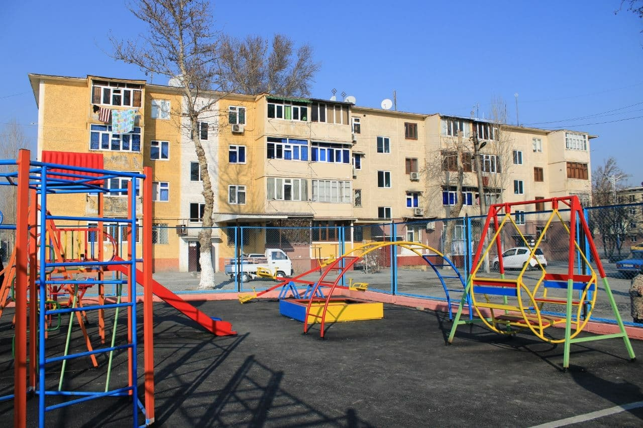 Ўзбекистон Республикаси Президентининг 2017 йил 24 апрелдаги ПҚ-2922 - сонли қарорининг 2-иловаси ижросини таъминлаш мақсадида, кўп хонадонли уй-жой фондига туташ ҳудудларда болалар ва спорт майдончалари ташкил этилмоқда.