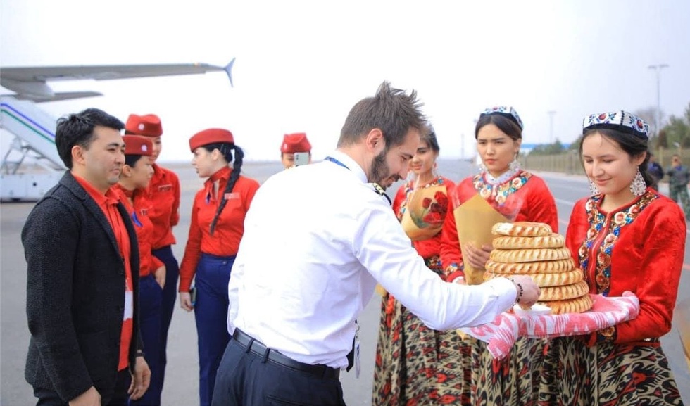 Ҳаво кемаси 1 март куни Олмаотадан етиб келди. Aнъанага кўра, самолёт тантанали равишда сувли арка билан кутиб олинди.