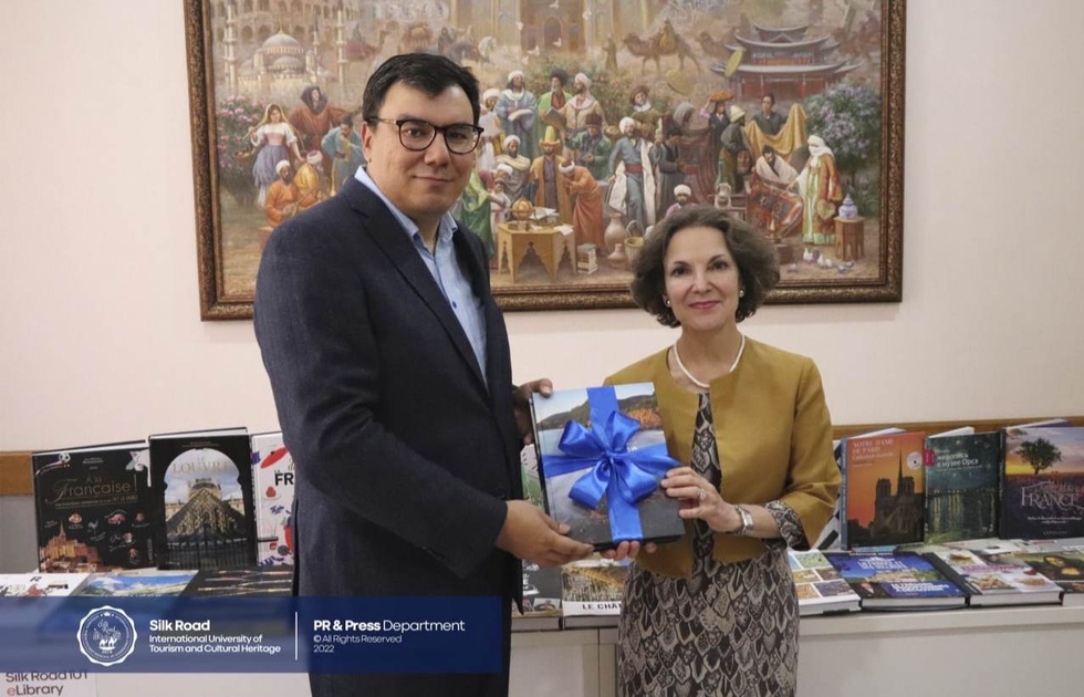 Франциянинг Ўзбекистондаги элчиси Орелия Бушез университет кутубхона фондига архитектура, музейшунослик, гастрономик туризмга оид ноёб китобларни совға қилгани эътиборга молик.