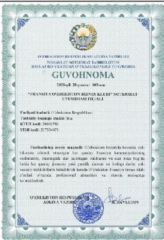 Вазирлик хабарига кўра, филиалнинг асосий мақсад ва вазифалари Ўзбекистон бозорида бевосита ёки билвосита иштирок этаётган ҳар қандай Франция компанияси ходимларини, шунингдек улар тайинлаган вакилларини ва улар билан боғлиқ ҳолда ҳар қандай жисмоний ёки юридик шахсни ва бошқа давлат ёки хусусий ташкилотларни бирлаштириш ҳисобланади.