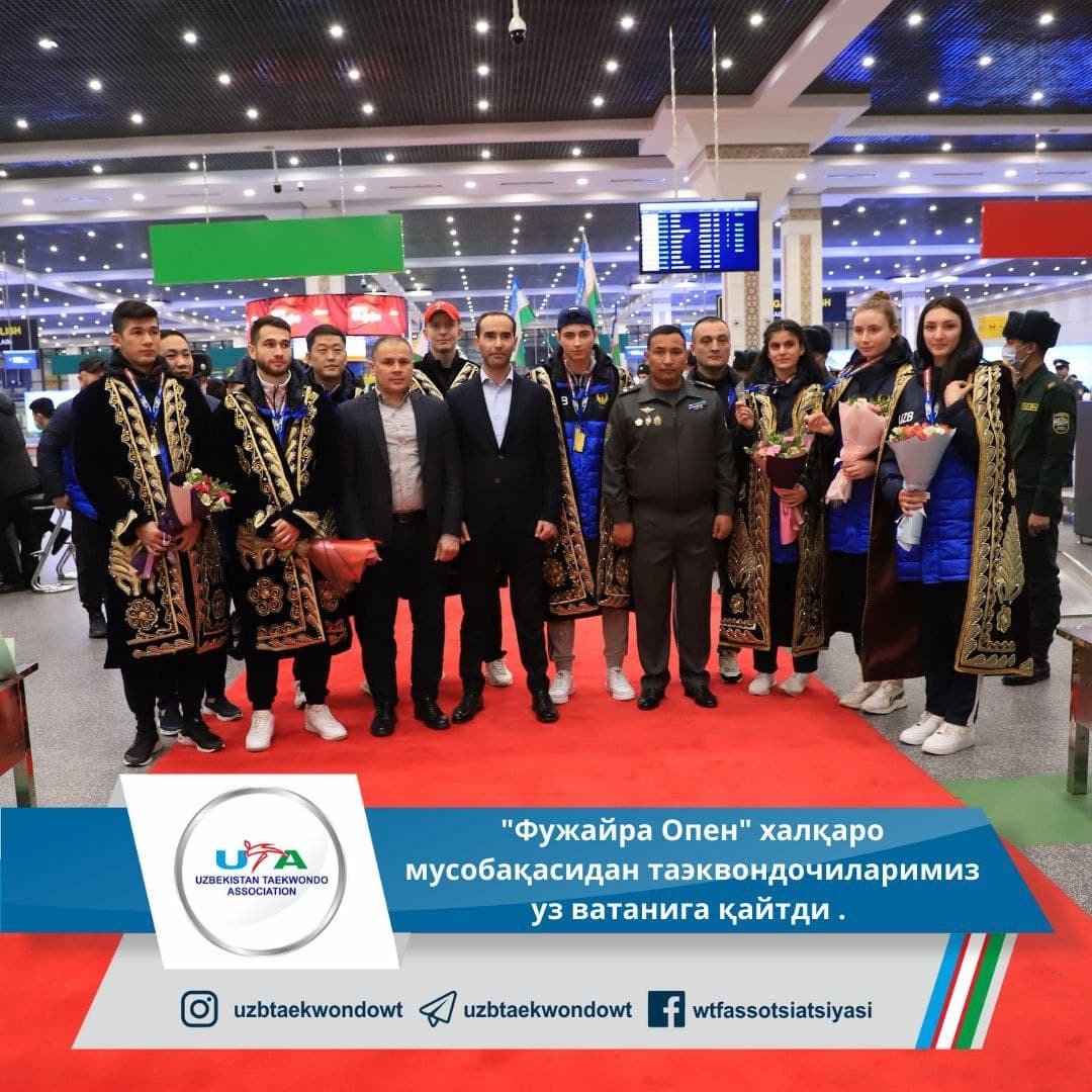 Бугун тунда спортчиларимиз Ислом Каримов номидаги Тошкент халқаро аэропортида муносиб тарзда кутиб олинди. Кутиб олиш маросимида Ўзбекистон таэквондо WT ассоциацияси мутасаддилари, спортчиларнинг яқинлари ва ОАВ ходимлари иштирок этишди.