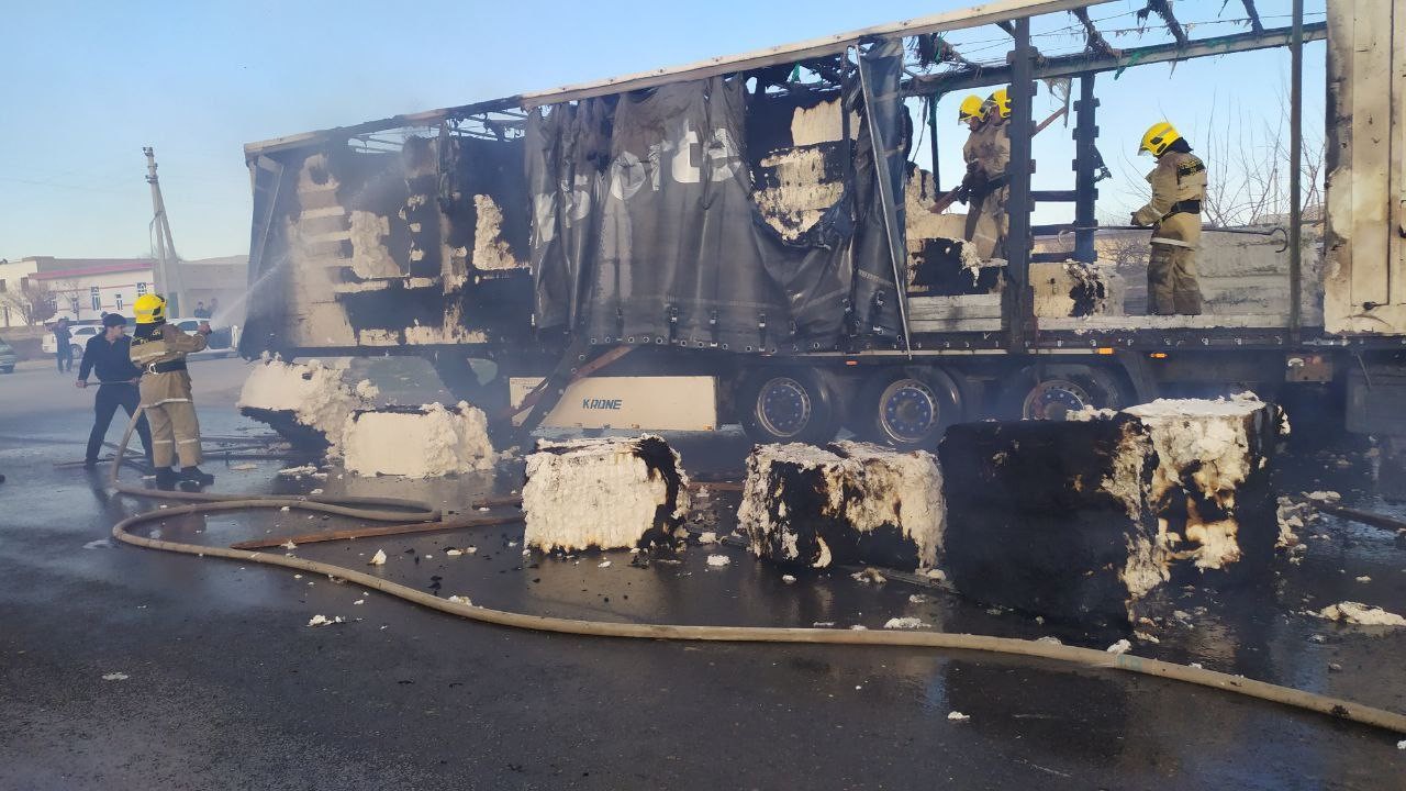 Кеча, соат 16:48 да ушбу юк машинасининг ҳайдовчиси салонда ёнғин ҳидини сезиб, машинанинг кузов қисмида ёнғин бошланганини кўрган.