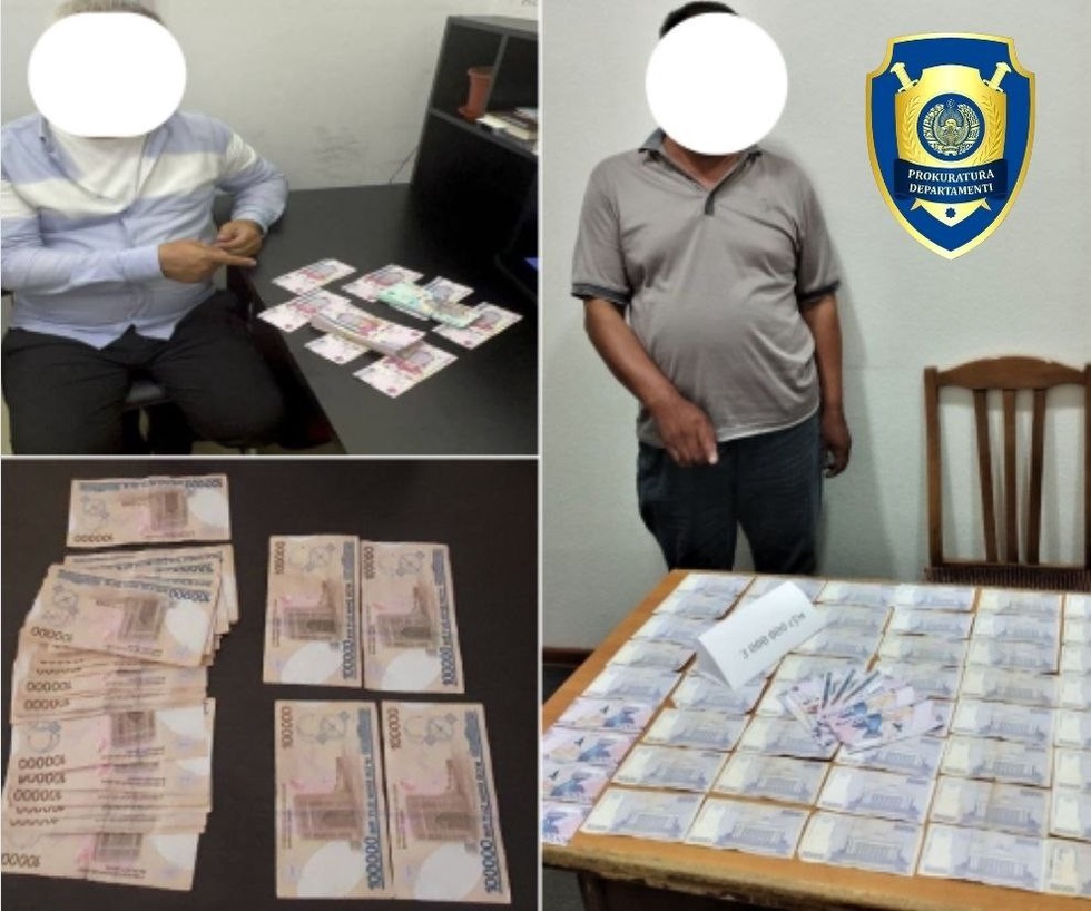 Худди шундай, Департаментнинг Қўрғонтепа туман бўлими томонидан ўтказилган тезкор тадбирда туман “Сувтаъминоти” МЧЖ бўлим назоратчиси М.О. “У.Х.” МЧЖ ошхонасининг сув сарфини ҳисоблаш ускунасининг яроқсизлиги юзасидан расмийлаштирган далолатнома бўйича жарима қўлламаслик ва янги ҳисоблагич ўрнатиб бериш эвазига МЧЖ иш юритувчиси М.А.дан 3 млн сўмни олган вақтида ашёвий далиллар билан ушланган.