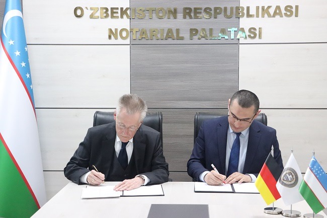 Бугун Ўзбекистон Республикаси Нотариал палатаси ҳамда Германия федерал нотариуслар палатаси томонидан ҳамкорлик меморандуми имзоланди.
