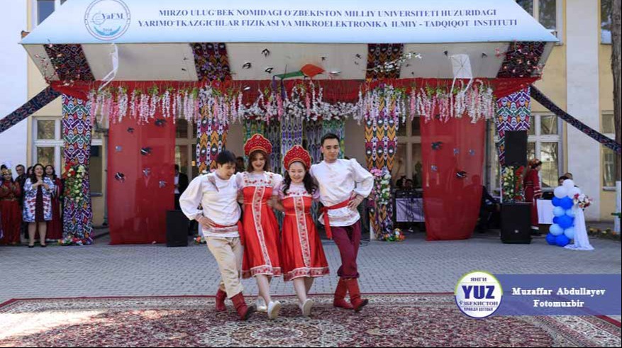 Меҳмонларнинг юртимизга қилган ташрифи айни баҳор ва янгиланиш байрами бўлган Наврўзи-олам нишонланаётган кунларга тўғри келди. Шу боис, институт филиали ва ЎзМУ қошидаги Яримўтказгичлар физикаси ва микроэлектроника илмий-тадқиқот институти жамоаси билан бирга ташкил этилган байрам тадбирига азиз меҳмонлар лутфан таклиф этилди. Меҳмонлар институтга киришданоқ икки томонда саф тортиб, қўлларини кўксига қўйиб, уларни ўзбекона лутф билан қарши олган талаба ёшларга ҳавас қилдилар. Институт ҳовлиси ям-яшил майсалару оқ, пушти ўрик гуллари уйғунлигидан чинакам баҳорий қиёфа касб этган. Ғоят кўтаринки ташкиллаштирилган тадбирнинг очилишида филиал ижрочи директори Х.С.Далиев байрам тадбирига йиғилган азиз меҳмонларни Наврўз билан муборакбод этди.
