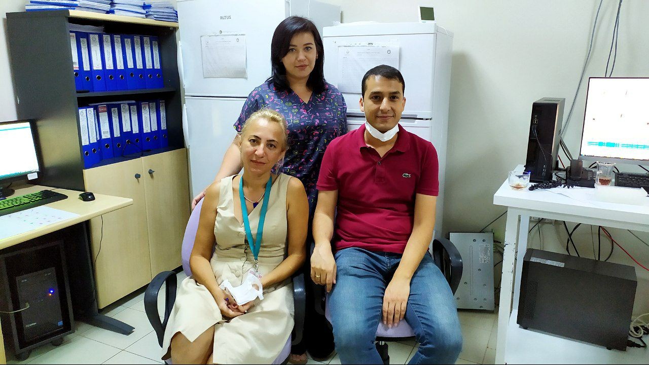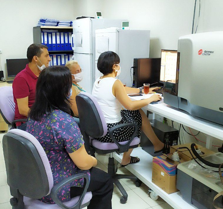 Анқара онкология марказнинг етакчи мутахассислари Чийдем Сонмаз ва Бариш Борал оқим cитофлуориметрияси усулида иммунофенотиплаш анализи бўйича дарслар олиб бормоқдалар.