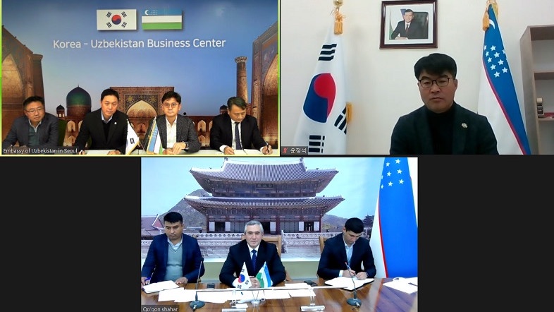 Бугун Корея – Ўзбекистон бизнес марказида мамлакатимизнинг Корея Республикасидаги элчихонаси кўмагида «Hanshin Engineering & Construction» компаниясининг ижрочи директори Чои Мун Гю ва Қўқон шаҳар ҳокими Маъруф Усмонов ўртасида онлайн тарзда музокаралар ўтказилди.