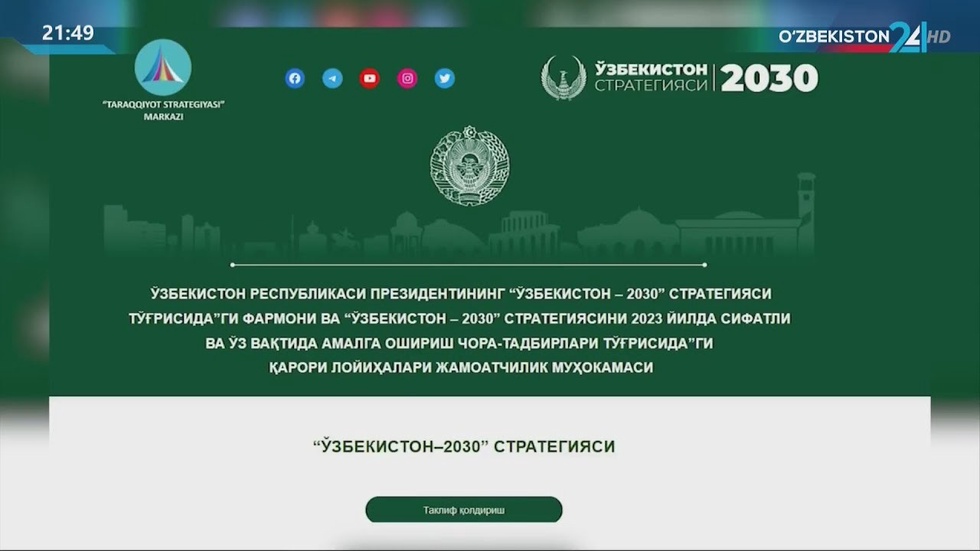 “Ўзбекистон – 2030” стратегиясини батафсил ўрганиб чиқиш ва бу муҳокамада фаол иштирок этиш ҳар биримизнинг бурчимиздир. Зеро, мазкур ҳужжат эртанги тараққиётимизнинг муҳим пойдевори бўлиб, эзгу мақсадларимизга эришиш йўлида дастуруламал ҳужжатдир.