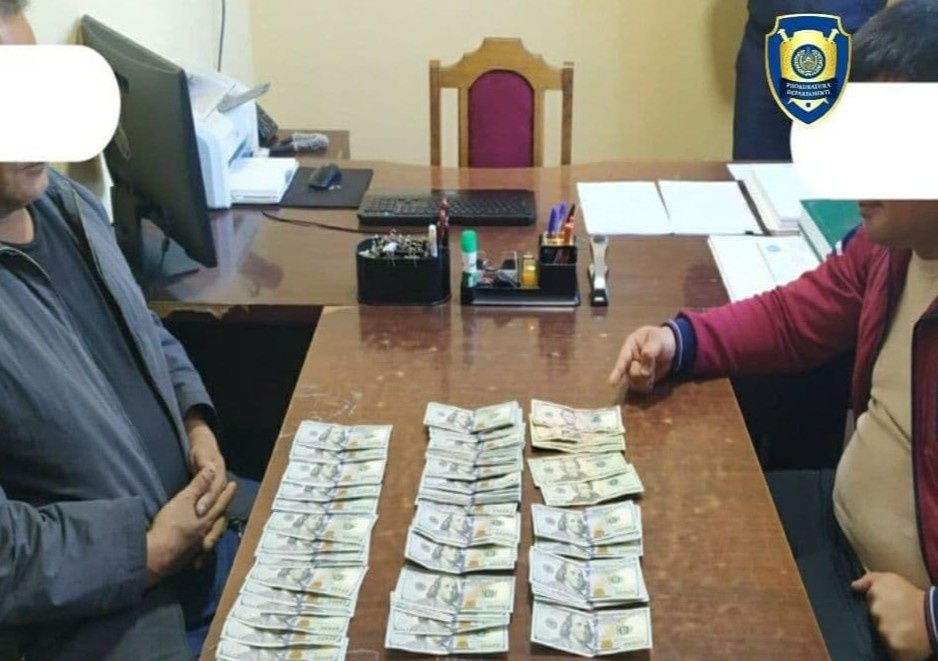 Бош прокуратура ҳузуридаги Департамент ҳамда ДХХнинг Ҳазорасп тумани бўлимлари томонидан ўтказилган тезкор тадбирда, фуқаролар Д.А. ва Қ.И.лар фуқаро Ғ.нинг ишончига кириб, унга турар жой қуриш учун туман ҳокимлиги захирасида бўлган 8 сотих ер майдонини танишлари орқали расмийлаштириб олиб бериш эвазига 10 000 АҚШ долларини фирибгарлик йўли билан олган вақтида ашёвий далиллар билан ушланганлар.