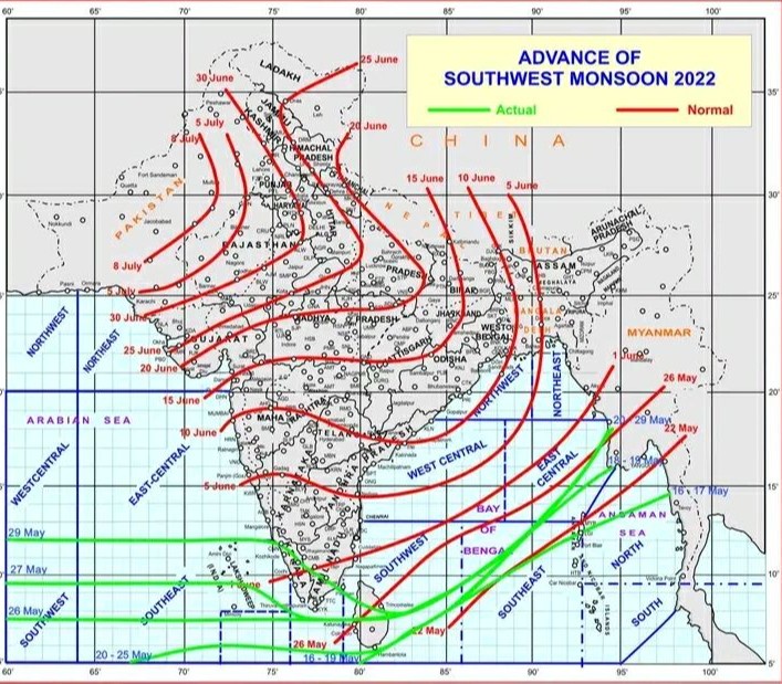 Муссон ҳаво массаси траекторияси Ҳиндистоннинг бир нечта штатларида мавсумий ёғинларнинг меъёрдан кўп бўлишига олиб келиши прогноз қилинмоқда.