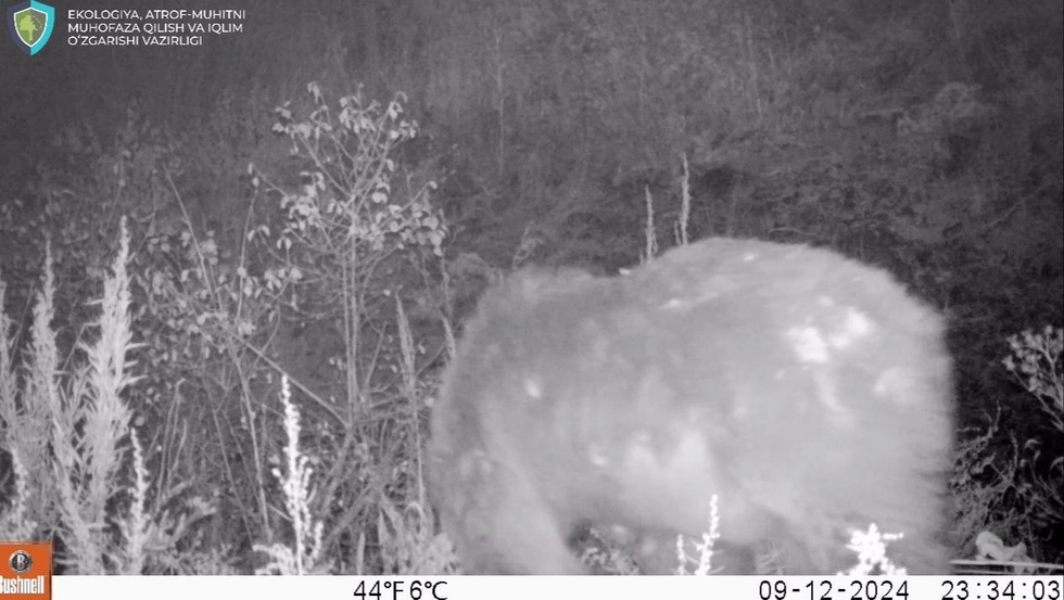 Одатда, айиқлар қиш мавсуми яқинлашар экан, қишки уйқуга кетишдан олдин тўйиб овқатланишга ва бу билан ўзига керакли бўлган моддаларни, витаминларни тўплаб олишга ҳаракат қилади. Фотоқопқон олган тасвирда ҳам Тян-Шан қўнғир айиғи озиқ излаб юрганини кўриш мумкин.