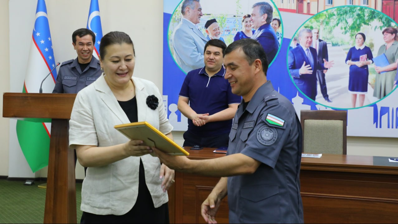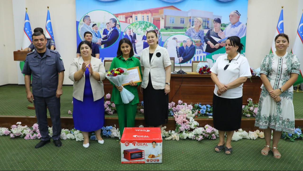Якунда, ўз хизмат вазифасини бажаришда сафдошлари орасида намуна кўрсатган 7 нафар ходимларнинг турмуш ўртоқларига бошқарма бошлиғининг ташаккурномаси ҳамда эсдалик совғалари тақдим этилди.