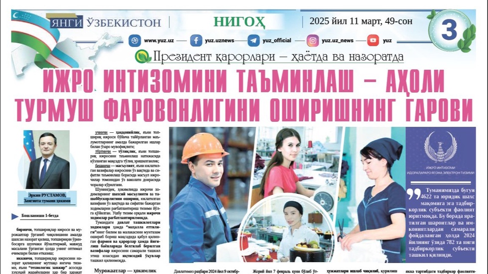 Туманимизда ижро интизомини мус­таҳкамлаш бўйича ҳар бир раҳбар ходим ўзига қуйидаги устувор йўналишларни белгилаб олган: