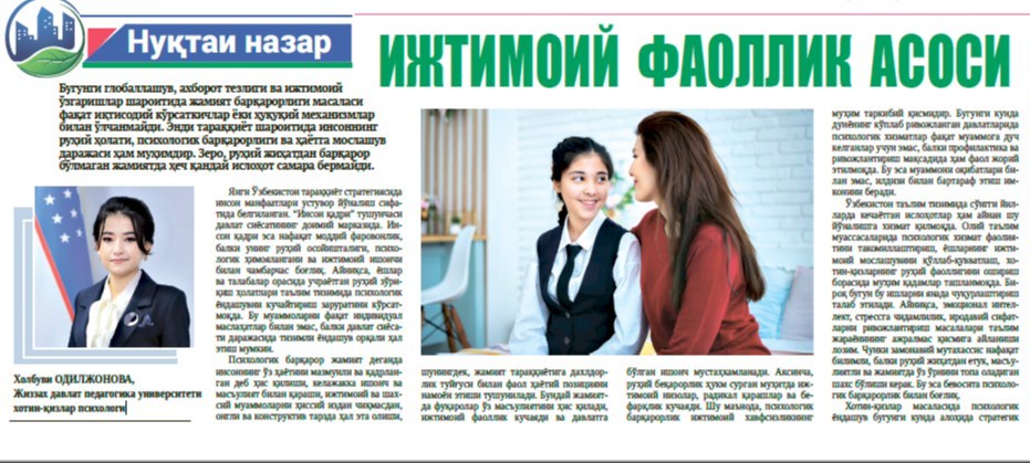 Жиззах давлат педагогика университети хотин-қизлар психологи