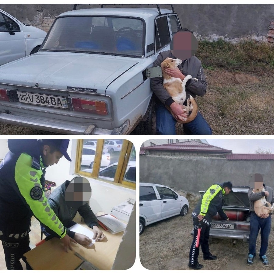 "Автомашина ҳайдовчиси Гулистон шаҳрида яшовчи 1988 йилда туғилган фуқаро А.А жорий йилнинг 28 ноябрь куни ўзига қарашли фермадан яшаш хонадонига итини олиб кетиш мақсадида автомашинасини юкхонасига жойлаб олиб кетаётган вақтда ити автомашина ёқилғи қуйиш баки қопқоғидан бошини чиқариб олган ҳолатида ижтимоий тармоқ фаоллари томонидан суратга олиниб нотўғри талқин қилиниб тарқатилган.
