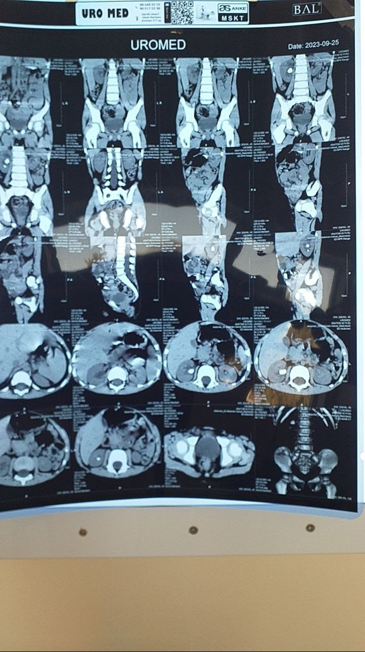 “Сийдик-тош касаллиги. Ўнг буйрак тошлари. Гидронефроз ўнгда. II даража” ташхиси билан муассасанинг урология бўлимига келтирилган Дониёржоннинг ўнг буйрагида 2 та тош борлиги тасдиқланди.