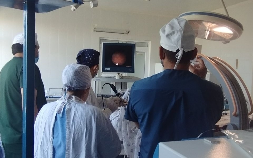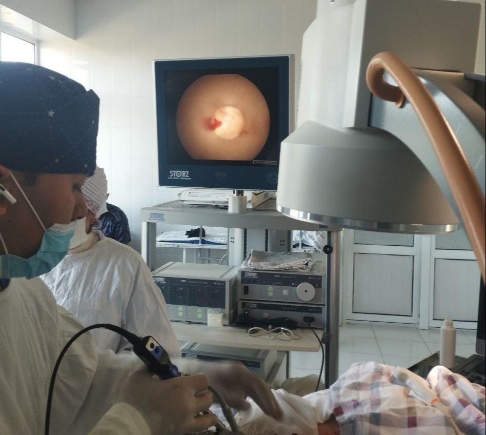 Жарроҳлар ингичка найча орқали боланинг буйрагидаги тошларни лазерда майдалаб, чиқариб олишди.