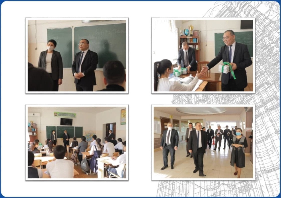 5 та ташаббус ҳамда "Ёшлар билан 100 кун" лойиҳаси доирасида умумий ўрта таълим мактабининг битирувчи ёшлари билан "Вазир соати"ни ўтказиб, тадбирда фаол иштирок этган ёшларга интерактив карталар, дивайзерлар ва китоблар тақдим этилди.